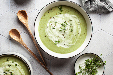 Mit einem Pürierstab den Brokkoli zu einer cremigen Masse verarbeiten. Wer gerne etwas “Biss” in der Suppe hat, püriert nicht ganz so lange.