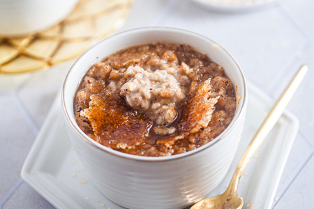 Die Oberfläche mit Xucker Bronze bedecken und mit einem kleinen Küchenbrenner karamellisieren.