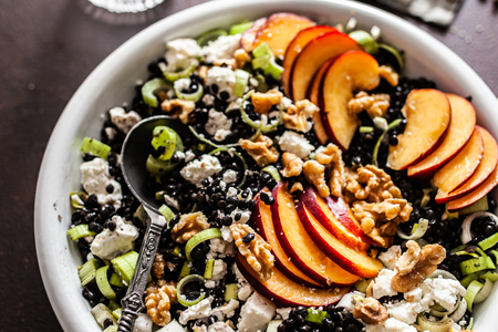 Linsensalat mit Pfirsich und Feta